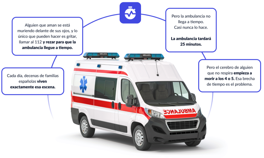 Sabrás que tienes que hacer algo. Pero no sabrás qué. Y mientras esa duda te paraliza, pasan 3 minutos, luego 5, luego 8. La ambulancia sigue sin llegar.